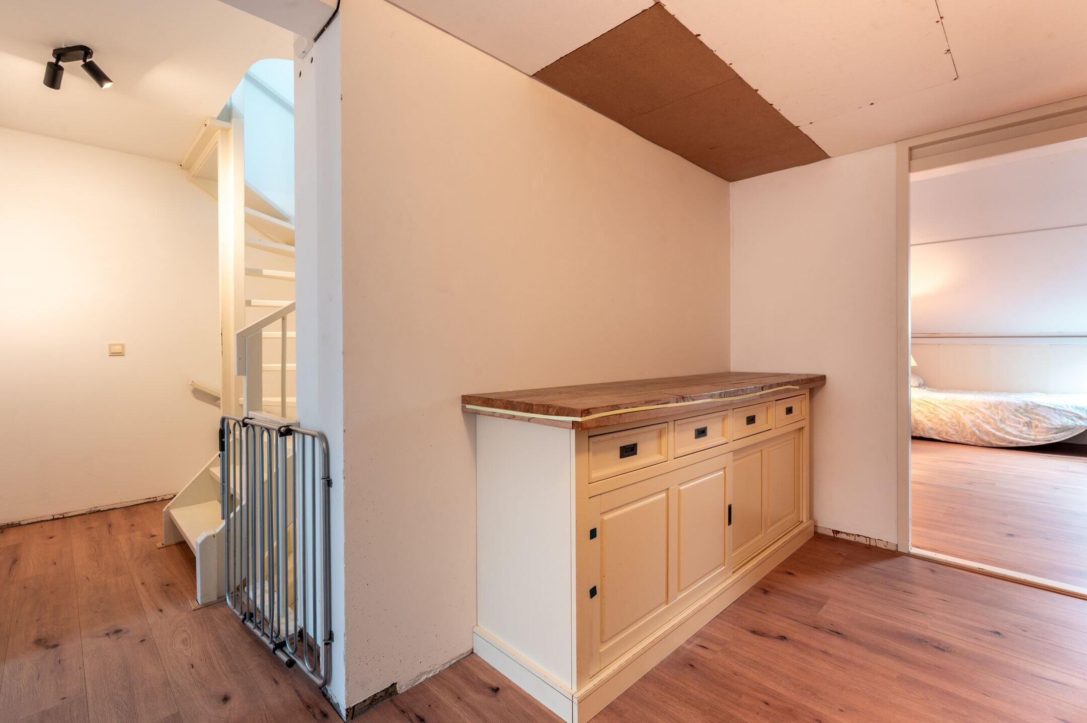 Tweede verdieping: Via een vaste trap bereikt u de overloop met een vaste kast met de CV-opstelling; VIERDE slaapkamer van niet minder dan 16,7m² welke is voorzien van een wastafelmeubel.
