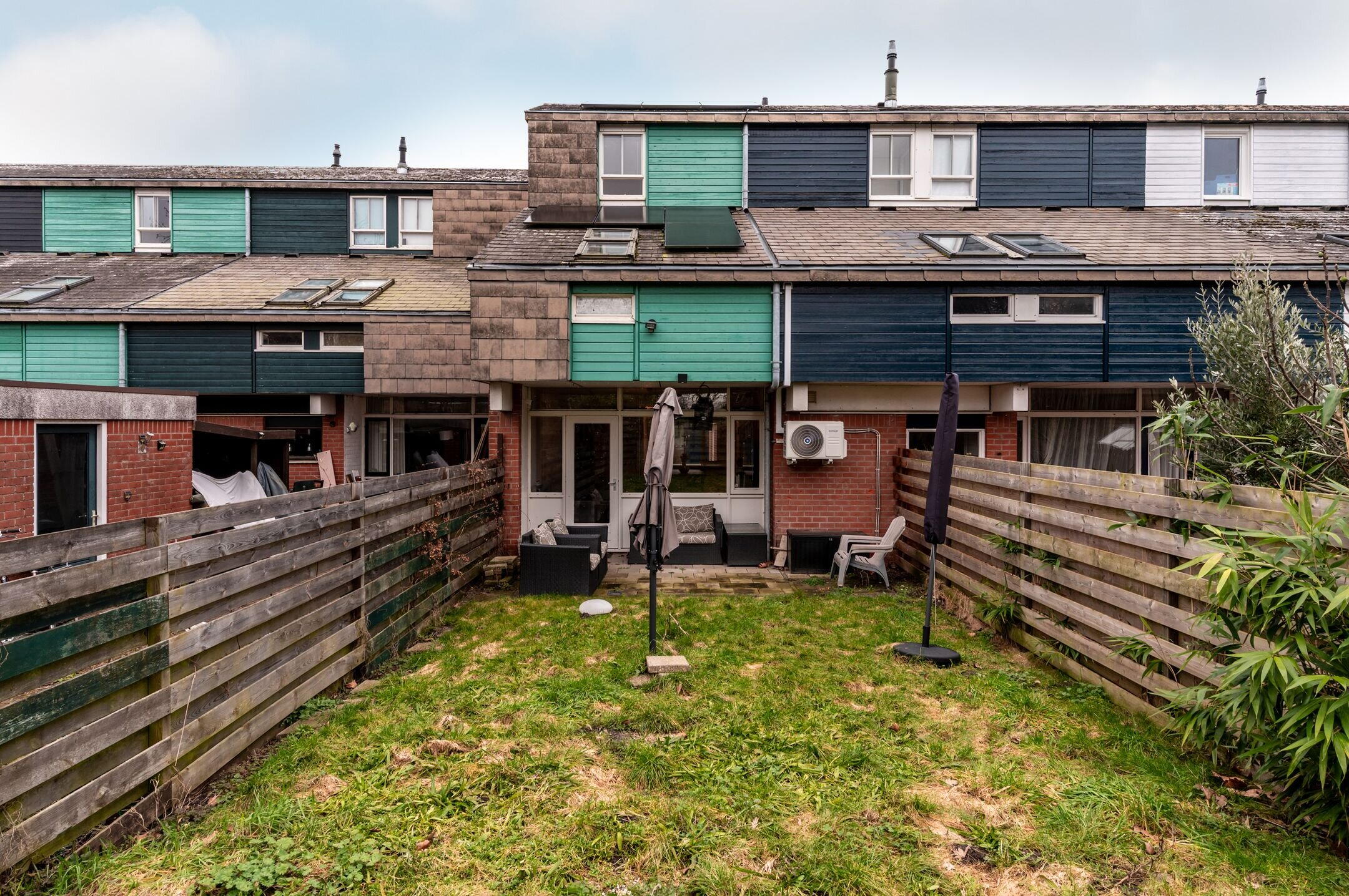 Tuin: West georiënteerd, ca. 10 meter diep met, doordat de achtertuin vrij gelegen is (grenzend aan openbaar groen), is optimale privacy gewaarborgd. Wel laat de tuin voldoende ruimte om deze naar eigen inzicht aan te leggen.